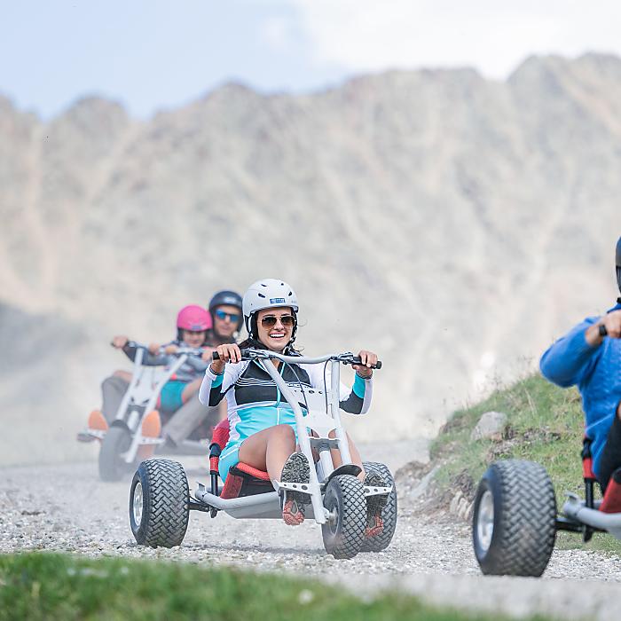 All’Alpin Arena Senales ti aspetta un’esperienza unica per piccoli e grandi avventurieri: i Mountaincarts della Val Senales. Con questi “Ferrari in montagna” non motorizzati si scende a tutta velocità – ma sempre in sicurezza – lungo strade forestali piene di curve emozionanti. E se una corsa non ti basta, nessun problema: fai semplicemente un secondo giro.