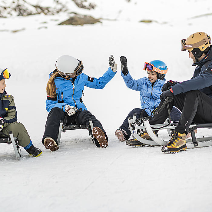 Pattini arrugginiti o voglia estemporanea di una discesa in slittino? Nel noleggio sci a Maso Corto puoi noleggiare slittini per tutta la famiglia.